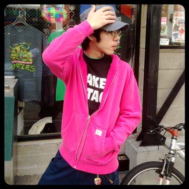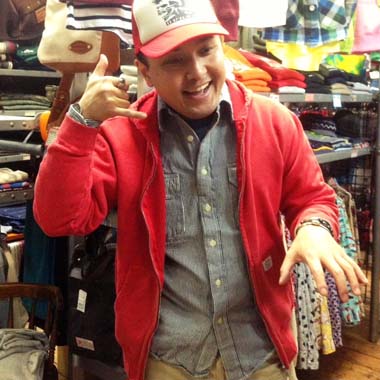 2013 3 11 カリフォルニアフーディー admin_base-1 blog 0 こんにちは!ゆうきちです。 街コンにイイね!!キャップも好調の“Ahe’hee”アへへよりカリフォルニアフーディーが入荷しましたよ!! ヴィンテージ加工を施しているので雰囲気バツグンなブルー、グリーン、ピンク、レッドのジップパーカー!! コチラのモデルはピンクを着用しそのまま購入したとさ!!春だから何かいい事あったんだろうねー、うん。 コチラのモデルは情熱カラーのレッドを着用!!楽しそうな表情見せてるけどいい事ないんだよねー、うん。